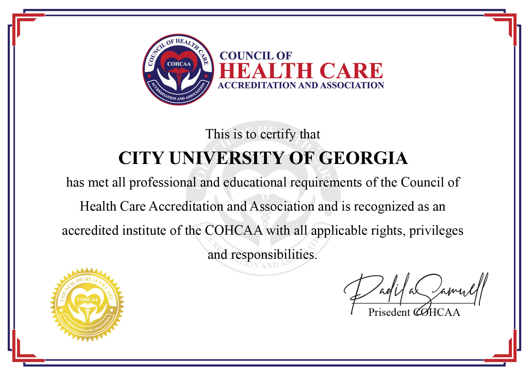 Along with regional and national accreditation, City University of Georgia also maintains specialized accreditation for its programs as appropriate to educational purposes and has more than 100 degrees/majors that have specialized accreditation. These programs benefit from the rigorous program review requirements in the accreditation process which are based on national standardized outcomes. City University of Georgia has attained membership of the following bodies: